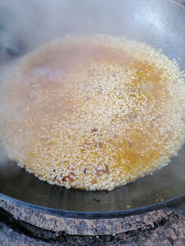 Затем перемешайте всю смесь с грецкими орехами и беконом.