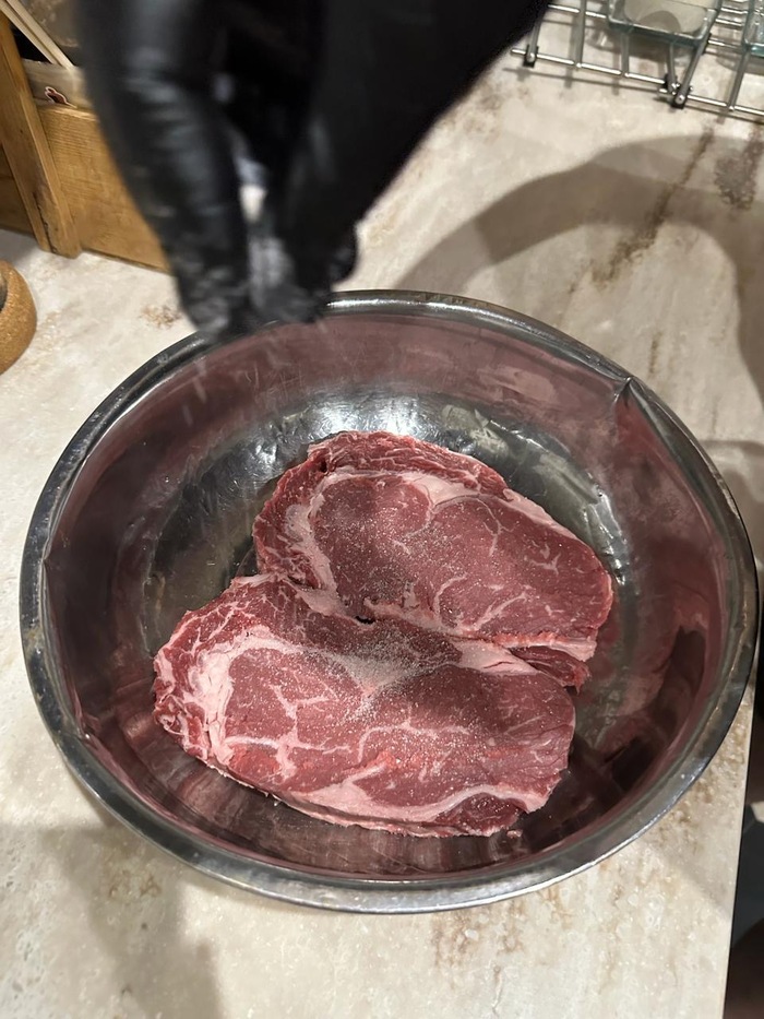 Пожарьте стейк на гриле или сковороде гриль до золотистой корочки. Накройте стейк фольгой и дайте ему постоять 10 минут.