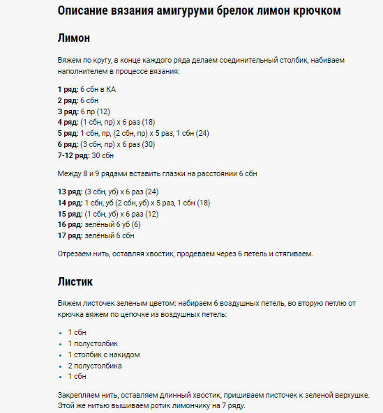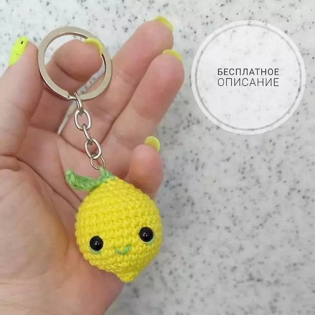 Следующая прелесть - лимонный брелок. По моему милейшая вещь. Я как то вязала кучку подобных для коллег, но лимонов не делала. Надо попробовать
