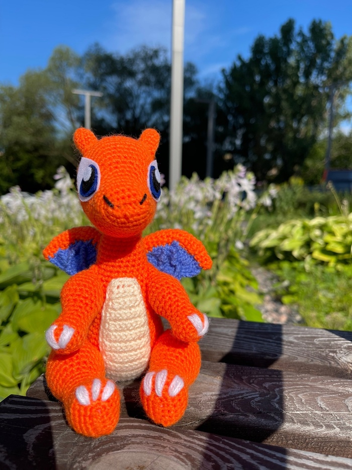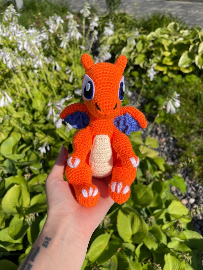 Добрый день, друзья! Вспомним о покемонах: кто из нас не любил этот анимационный сериал в детстве? Когда я решила связать игрушку пикачу, я не смогла устоять перед Чаризардом и связала его в первую очередь. Ведь я всегда обожала драконов и динозавров, о чем упоминала и в своем прошлом посте про Тирекса и связанную с ним игру.