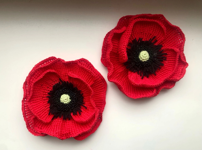 Итак, очередная моя работа. Решила немного вникнуть в технику тунисского вязания и связала две броши в виде маков диаметром 13 см. Получилось, конечно, с недочётами, - на то он и первый раз - но в целом я довольна, буду дальше тренироваться и вязать в этой технике что-нибудь ещё по мелочи время от времени.