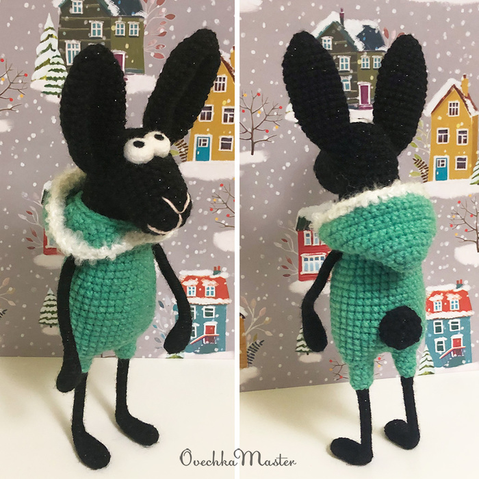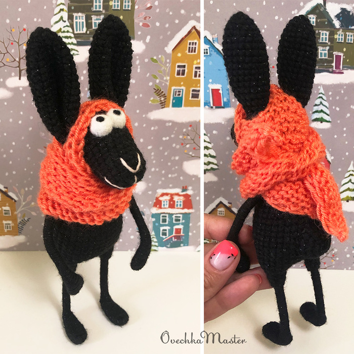 Я еще весной показывала первого своего вязаного брутального чёрного кролика с крафтовым букетиком (символ 2023).