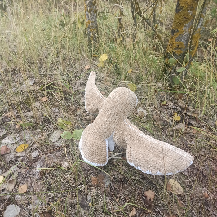 Сипуха из пряжи YarnArt Velour. Когти и клюв из запекаемой полимерки. Проволочный каркас. Размах крыльев 60+ см