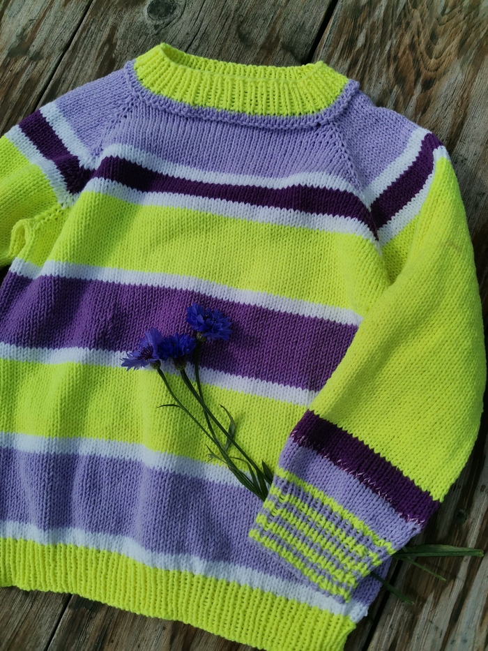 К сентябрю решила что нам нужен свитер. В ход пошли остатки пряжи Yarnart Jeans. Спицы 3.5.