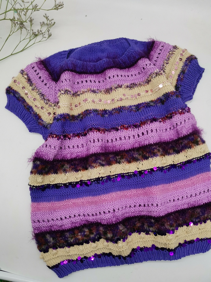 Накупила разной фантазийной пряжи на полоски - люрекс, пайетки, травку, в общем, всякую всячину и буквально за три дня кофточка была готова)