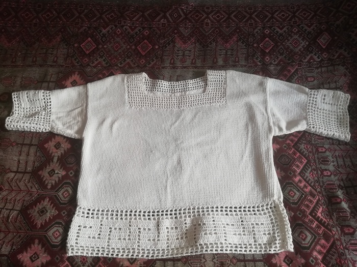 Давно вязала маме вот такую летнюю кофточку из х/б нитей. Связано спицами, а вставки крючком. Мама её жалела, одевала на выход. Уже и мамы нет, а кофточка осталась...