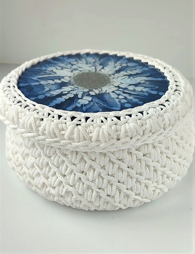 Буквально вчера я в пятый раз прошла Ведьмака и решила, что мне ни жить ни быть нужно что-то с символом школы волка. Так пришла идея связать интерьерные корзинки и сделать на крышках к ним роспись в виде знака каждой ведьмачьей школы.