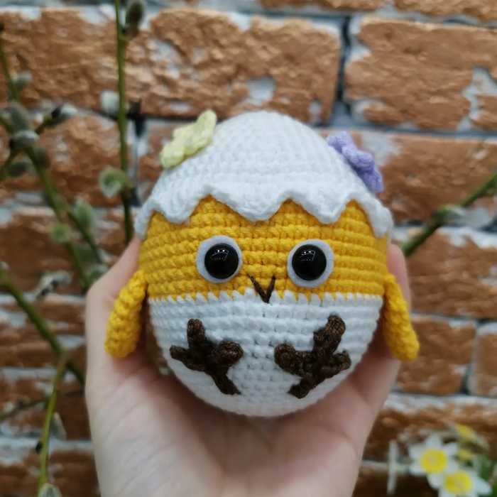 Такого цыплёнка я связала из пряжи Джинс, крючком 2.