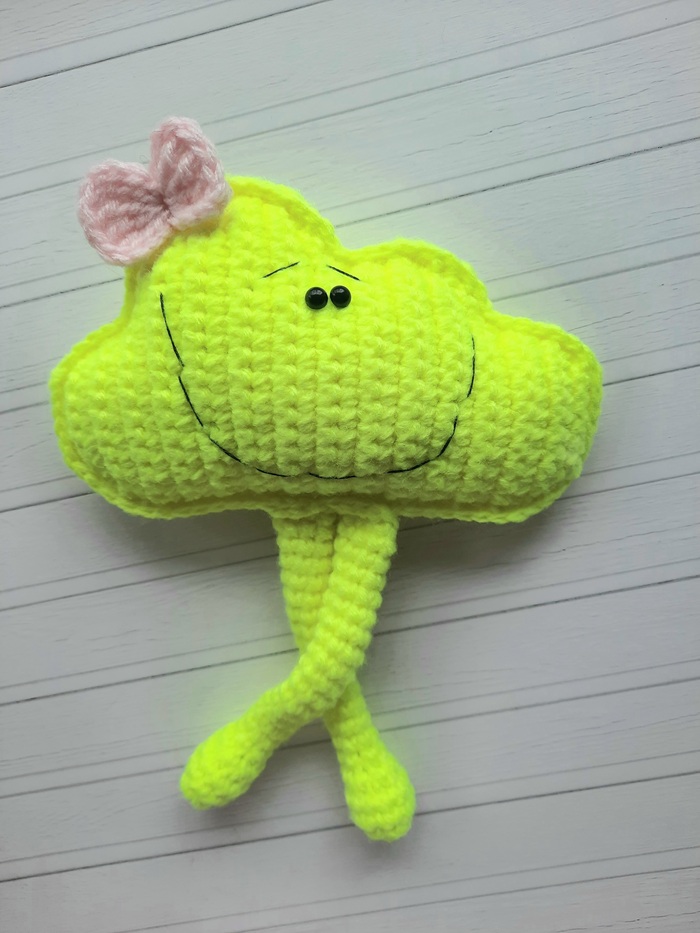 Если хотите, чтобы игрушка использовалась как брелок, по вставьте по центру головы кольцо для брелка.