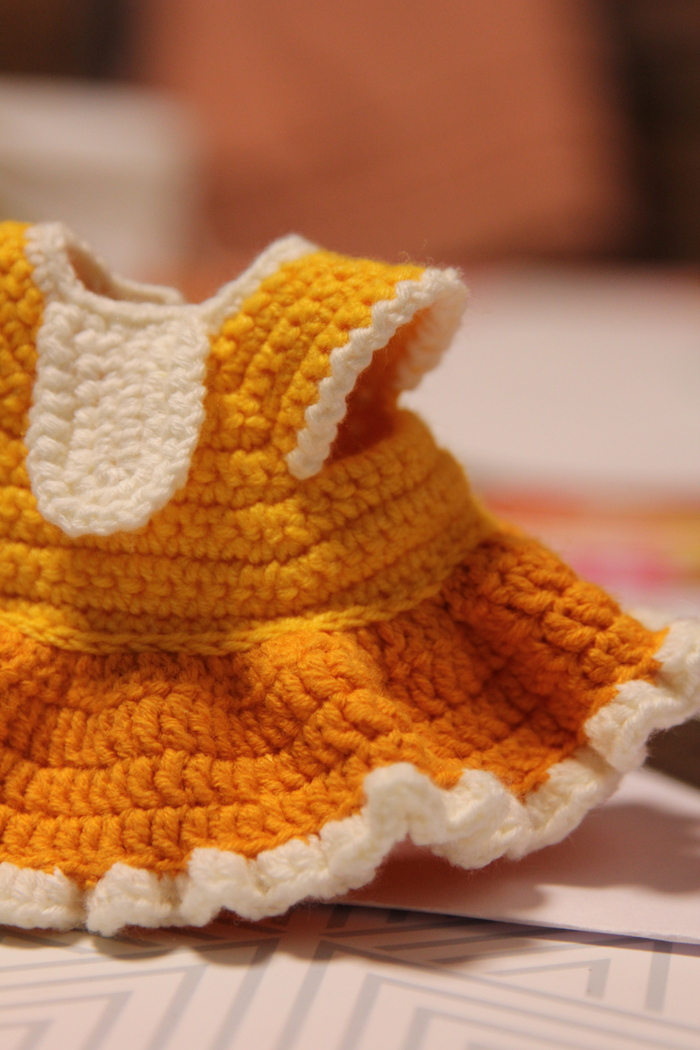 В процессе вязания у меня было несколько вариантов ободка и платьев. Например такой ободок👆