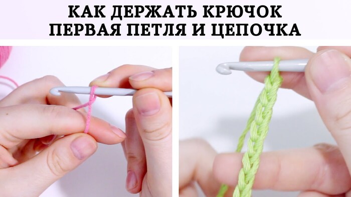 петли большим пальцем к указательному, просуньте крючок снова под нитку на указательном пальце, зацепите эту нитку и протащите через петлю на крючке. Это основное действие при вязании крючком. Не забывайте при этом придерживать длинный конец нитки мизинцем. Ну вот, у вас связана одна воздушная петля цепочки (та петля, что на крючке, никогда не считается, запомните – пригодится при вязании узоров). Начальную петлю можно затянуть в узел, потянув за короткий конец нитки. Всеснова прижимаем основание предыдущей петли пальцем, зацепляем нить