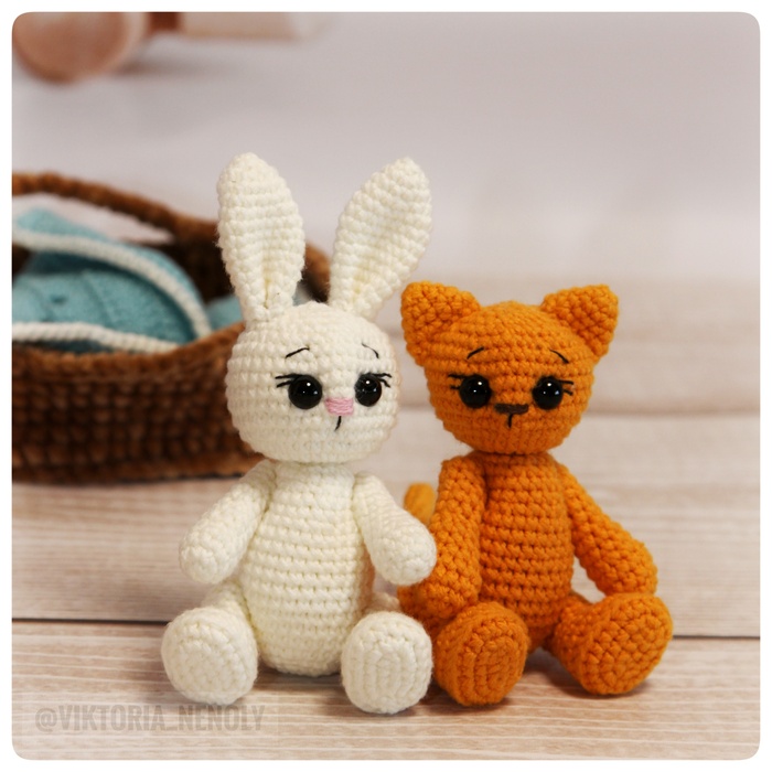 Вязала игрушки с использованием сустава: это необходимо, чтобы сделать вращающуюся голову. Кошка и зайка могут смотреть по сторонам😂