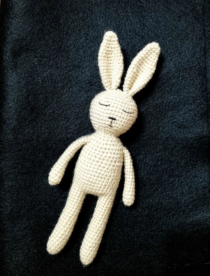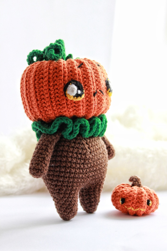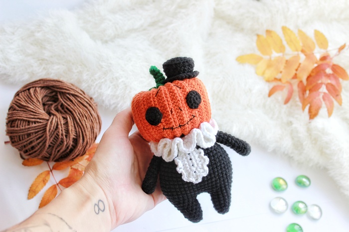 Ноги, тело, голова - единая деталь, ручки связаны заранее и присоединены в процессе вязания тела.