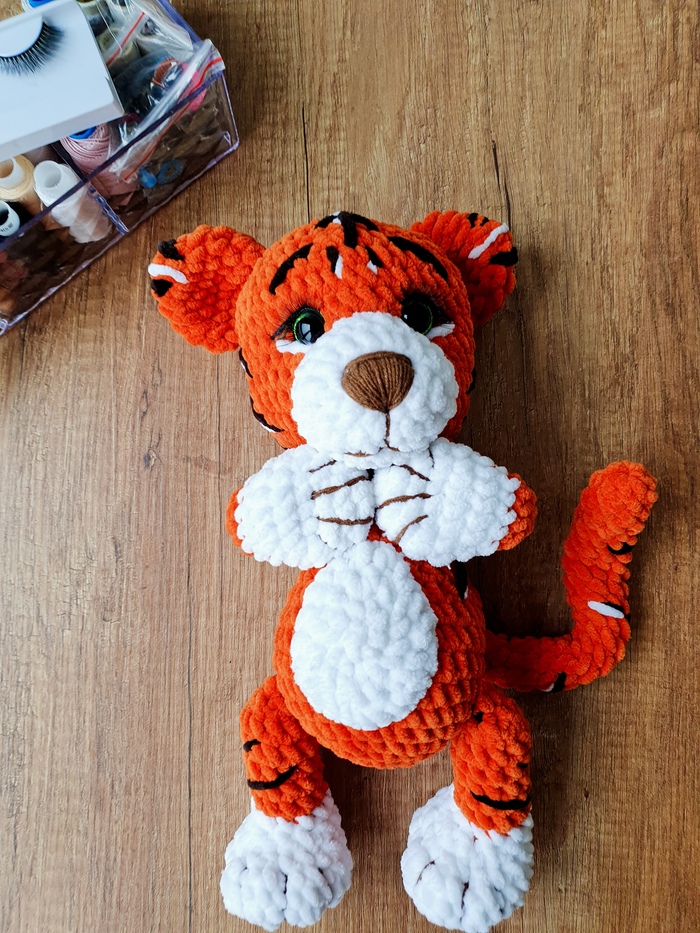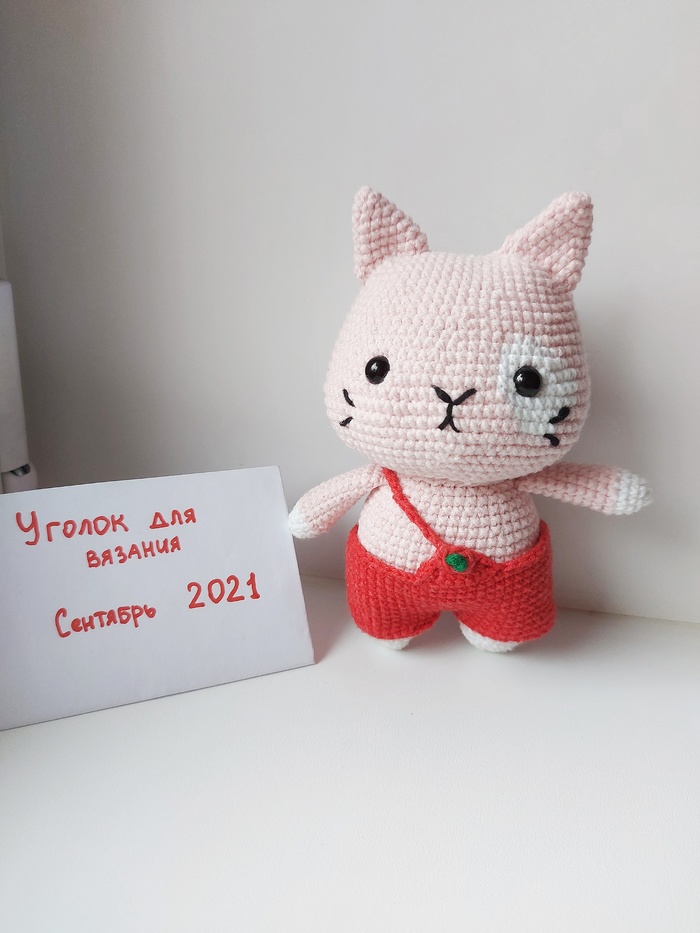 Основным цветом котика я решила сделать розовый с белым пятнышком, красный и зелёный я на тот момент ещё не совсем придумала куда применить)