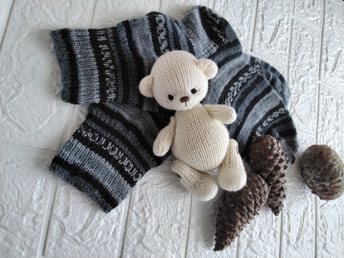 Привет всем, кто осознанно заходит сюда. Я связала очередной "шедевр". Мне все нравится, кроме рукавов, ибо они короткие, блин. Либо забить и подворачивать, либо перевязать, но эта пряжа так себе распускается. 😐