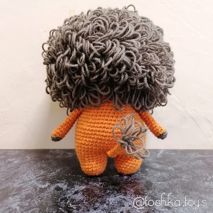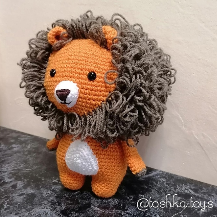 Случился в начале месяца очень срочный заказ: девушке была нужна игрушка. Среди моих работ ей очень приглянулся тигрёнок, но нужен был лев. До этого момента с вязанием гривы я не сталкивалась, потому брать такой заказ было вдвойне интересно.