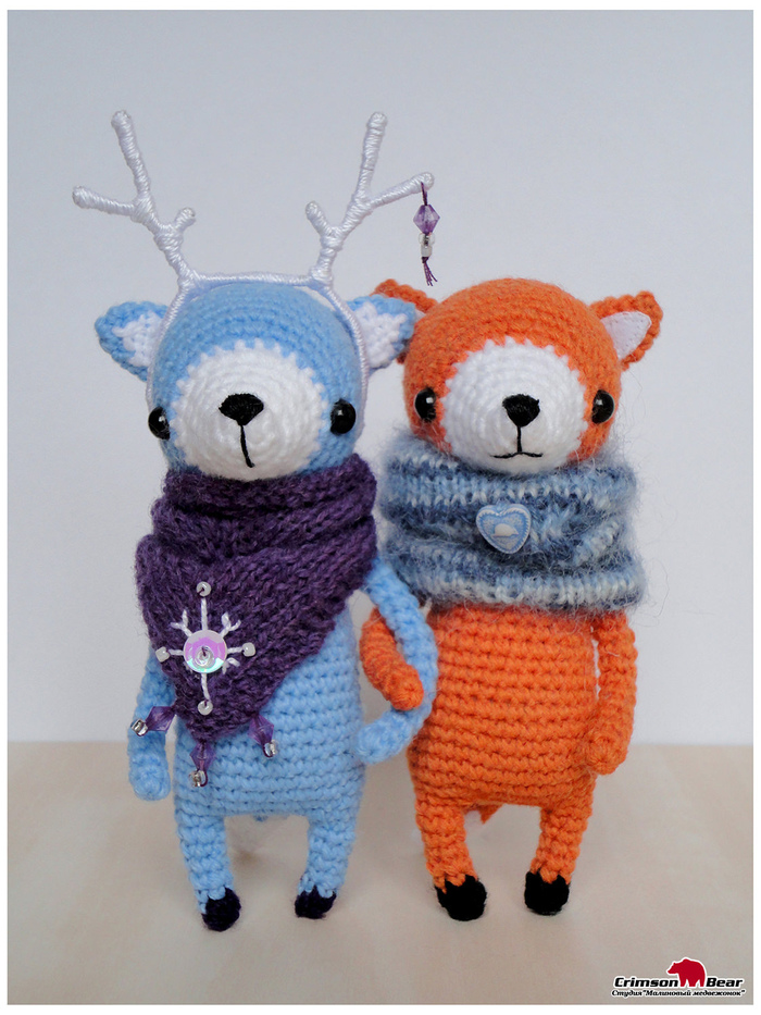 Не смотря на то, что игрушка вязалась из совсем другой пряжи и крючком 2,5, рост у обоих Стичей вышел одинаковый.
