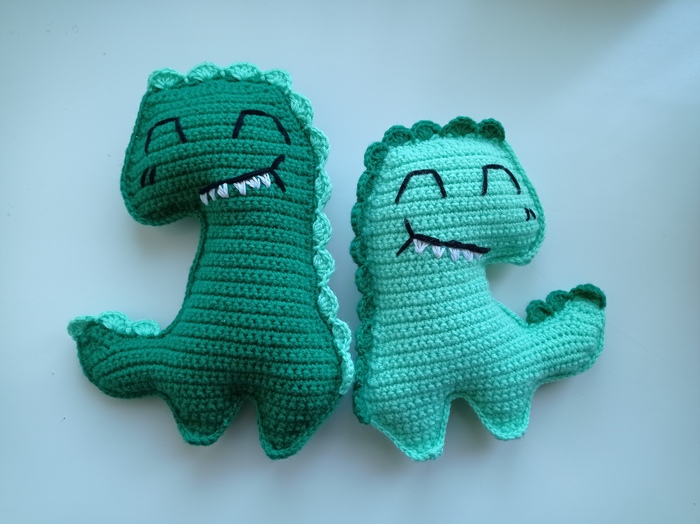 И подарочные динозаврики для детей. Пряжа Пехорка детская новинка, цвета: экзотика и бильярд, крючок 2,5. Наполнитель синтепух. Основа схемы для этих динозавров взята в инстаграмме у lyalyakot, немного переделана под "себя".