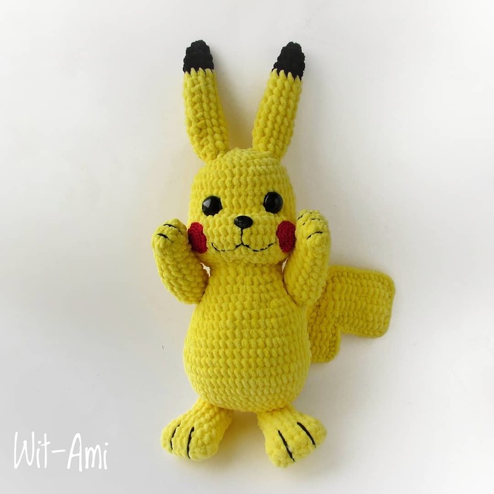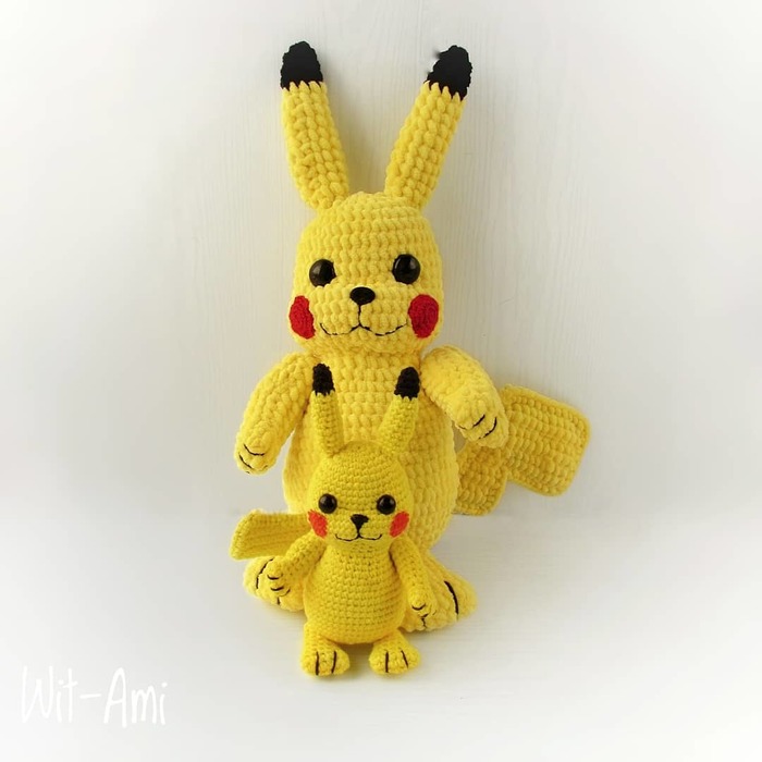 А потом связала такого же Пикачу, только маленького, из полухлопка.