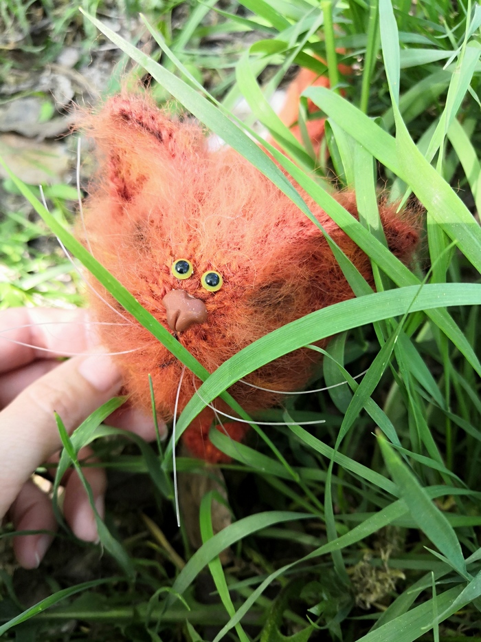 Полностью на шплинтовом креплении, все части тела подвижны. Связан из пряжи Лотос Травка стрейч, набит холлофайбером, тонирован сухой пастелью.