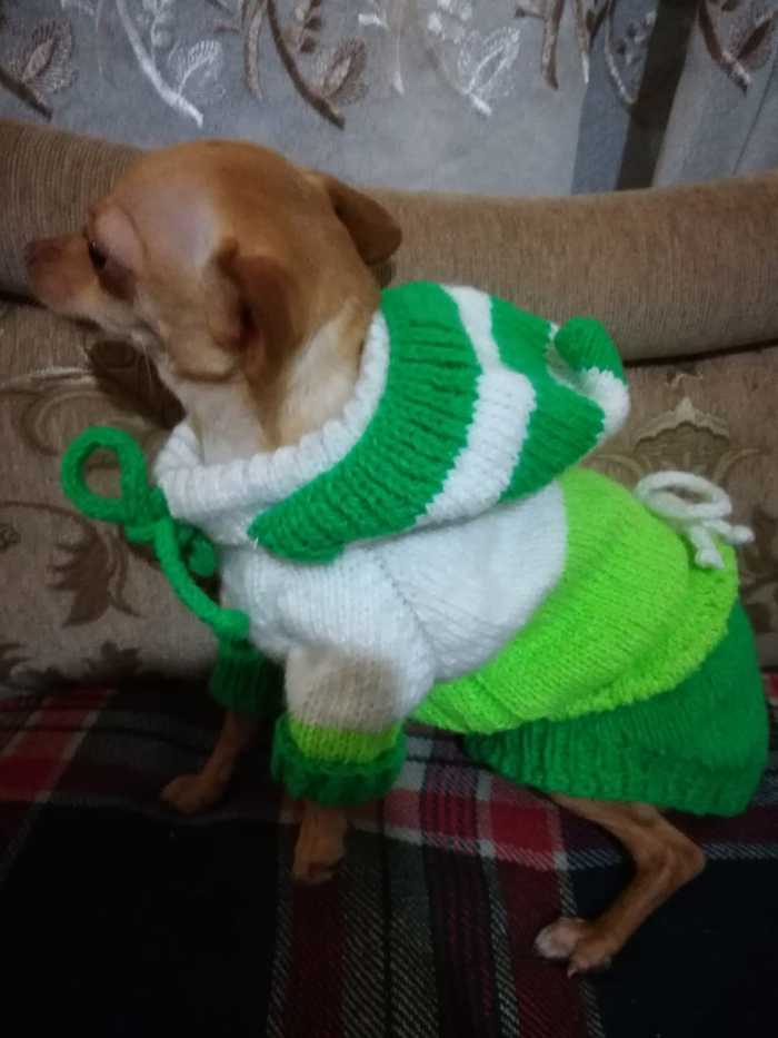 Рассказал жене о конкурсе. Супруга тоже решила поучаствовать. Так как мы живём в Сибири, то оооочень ждём приближения тепла, яркого солнышка и много зелени. Выбор сразу пал на такие яркие цвета. Осталось только решить, что же вязать. Наша собачка Дина, которая очень любознательная и любит клубочки(играться с ними), навела на мысль, что можно сделать ей такую яркую обновочку. Теперь мы, выходя во двор, привлекаем внимание, когда наша моделечка бегает....Надеемся понравиться подписчикам и выиграть конкурс.