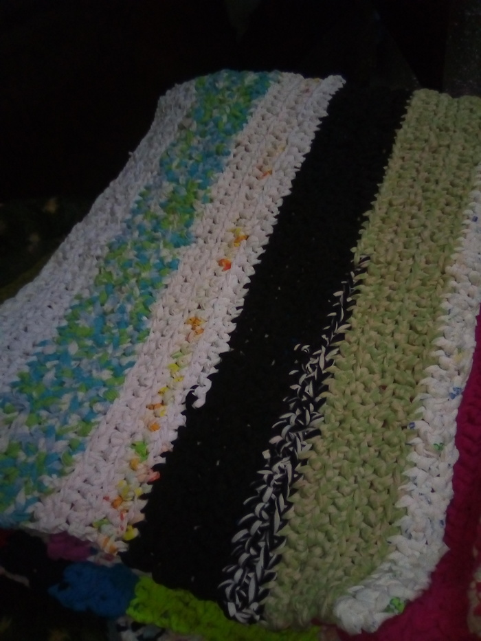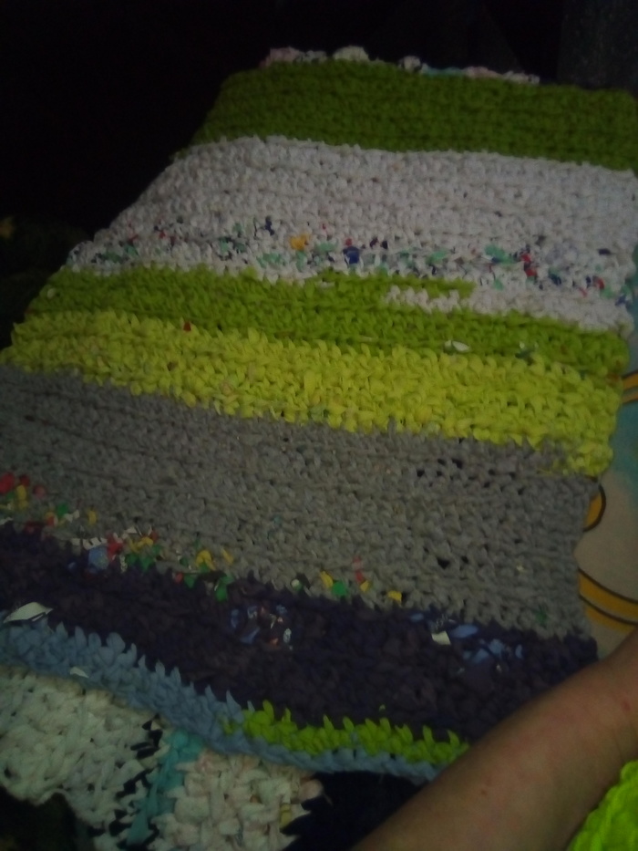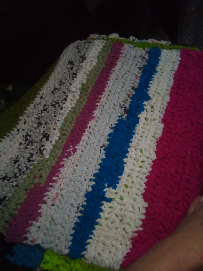 Часов пять, наверное, резала для них верёвочки из детских вещей. Дорожки не получились, смутил вопрос как стирать и сушить. Получились прикроватные коврики, для каждого свой))