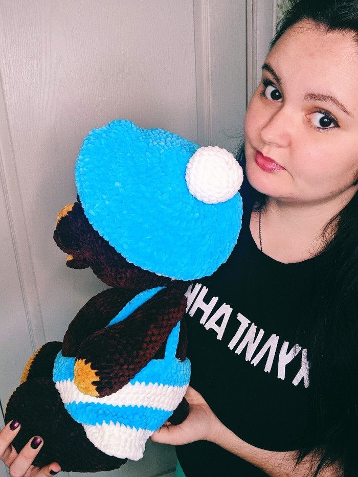 Закрепить, оставить нить для пришивания. Не набивать. Сложить пополам и пришить к верхней части головы.