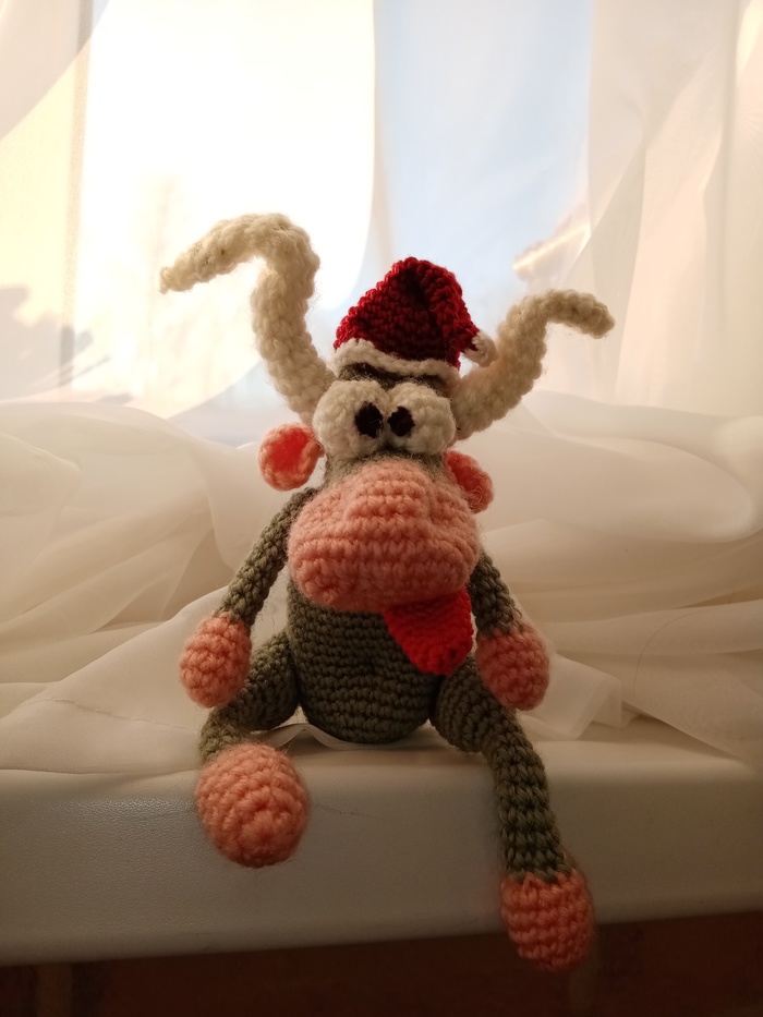 Вязала я его уже быстрее, дня 3. Рост получился 26 см (это после операции на мозге, до того был больше 30-и).