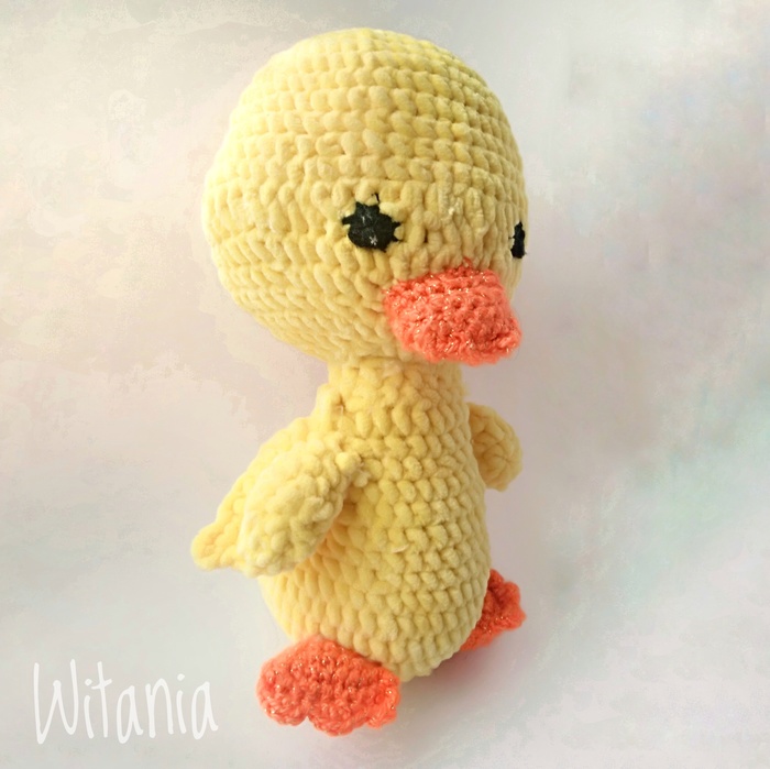 Но всё же итоговый результат получился приятным. Игрушка достаточно мягкая и пушистая. И за счёт этого, ну и классного желтого цвета конечно, очень похожа на настоящего утёнка.