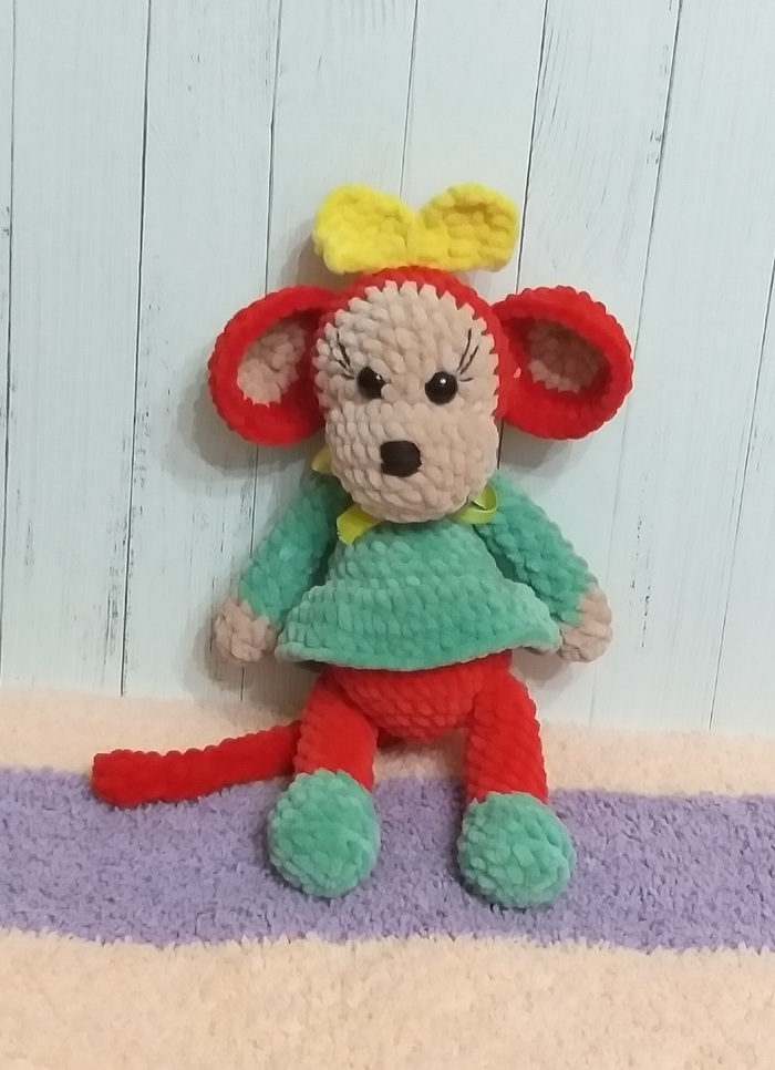Зелёная нить хлопок, остальные ирис, глазки пуговки. В высоту 8,5 см