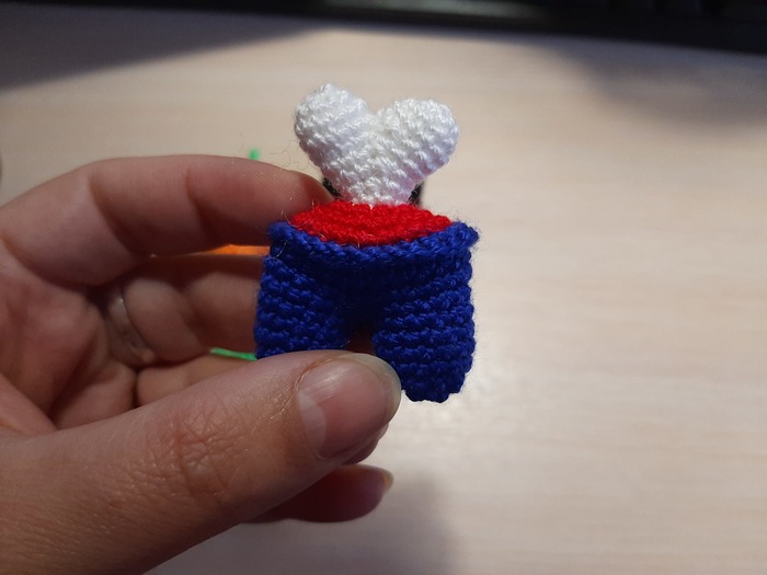 Только нитки взяла какие-то дешманские остатки, чтобы дёшево вышло (я не вяжу на продажу, на ярмарки. Иногда удаётся сбыть игрушку почти по себестоимости, и то радость. поэтому экономлю). Так что в процессе вязания вижу, что получается криповато, а не мило. Психанула, бросила. Но не распустила.