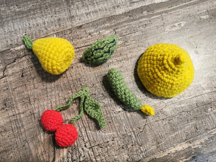 Игла вырезана из дерева, использованы шерстяные нитки.