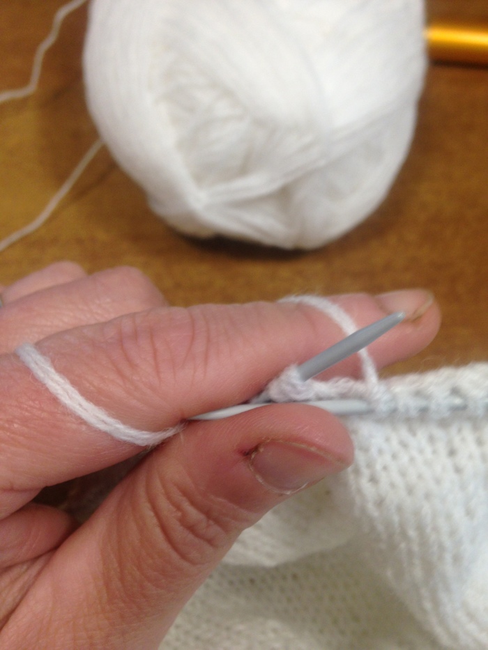 Нитка обвивает палец, этот виток регулирует натяжение, за счёт чего нить подаётся более равномерно. Привыкаешь моментально.