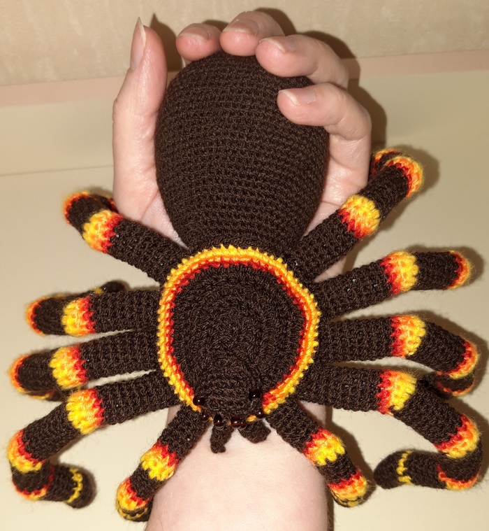 Не очень люблю членистоногих, но эти пауки-птицееды меня просто покорили! Несмотря на то, что вывязывать такое количество тонких ножек довольно муторно, пауков связано уже три штуки.