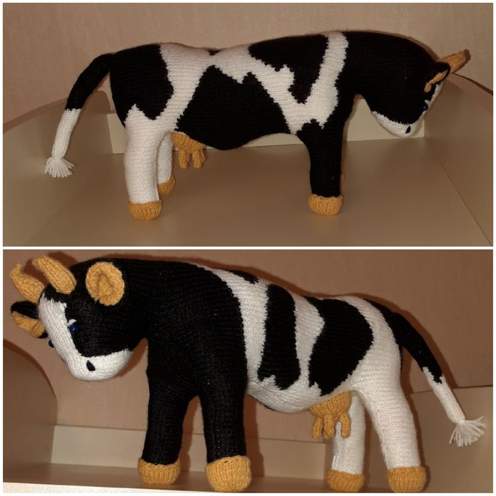 Откровенно говоря, бывают и неудачные проекты. Я с большим удовольствием вязала эту корову, предвкушая какая прекрасная игрушка получится в итоге! А получилась - смесь коровы и таксы. Но дочке этот мутант пришёлся по вкусу, ну и пусть играет.