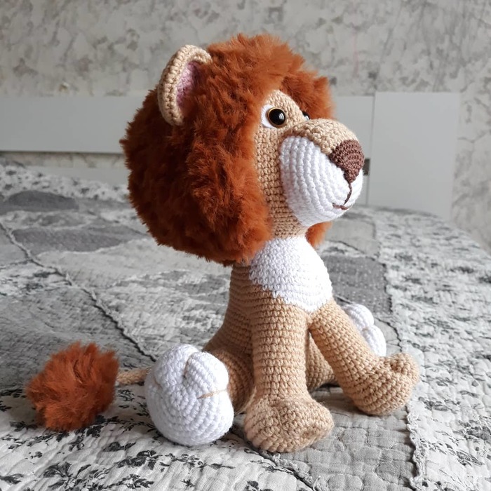 И так, вот лев в шапке-гриве: в последствии я ее довязала:
