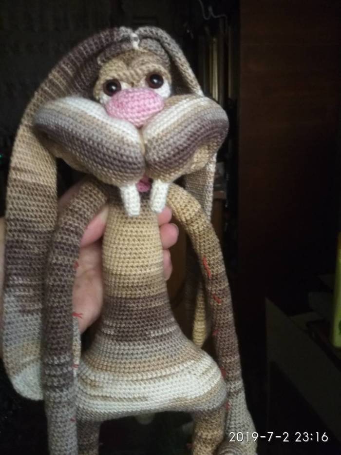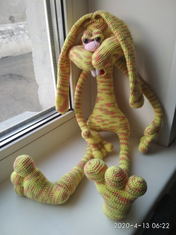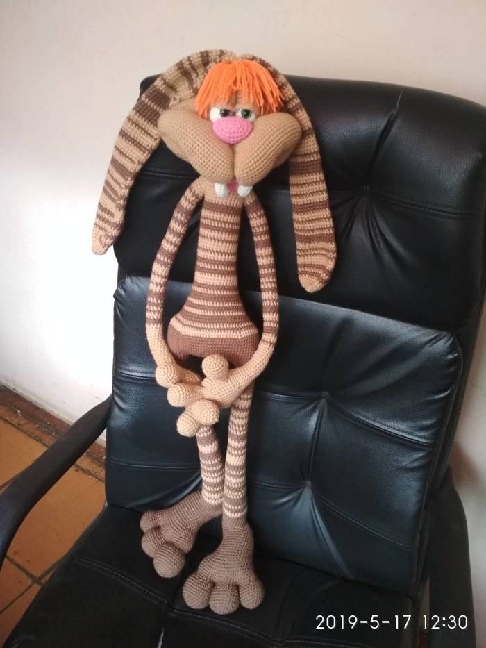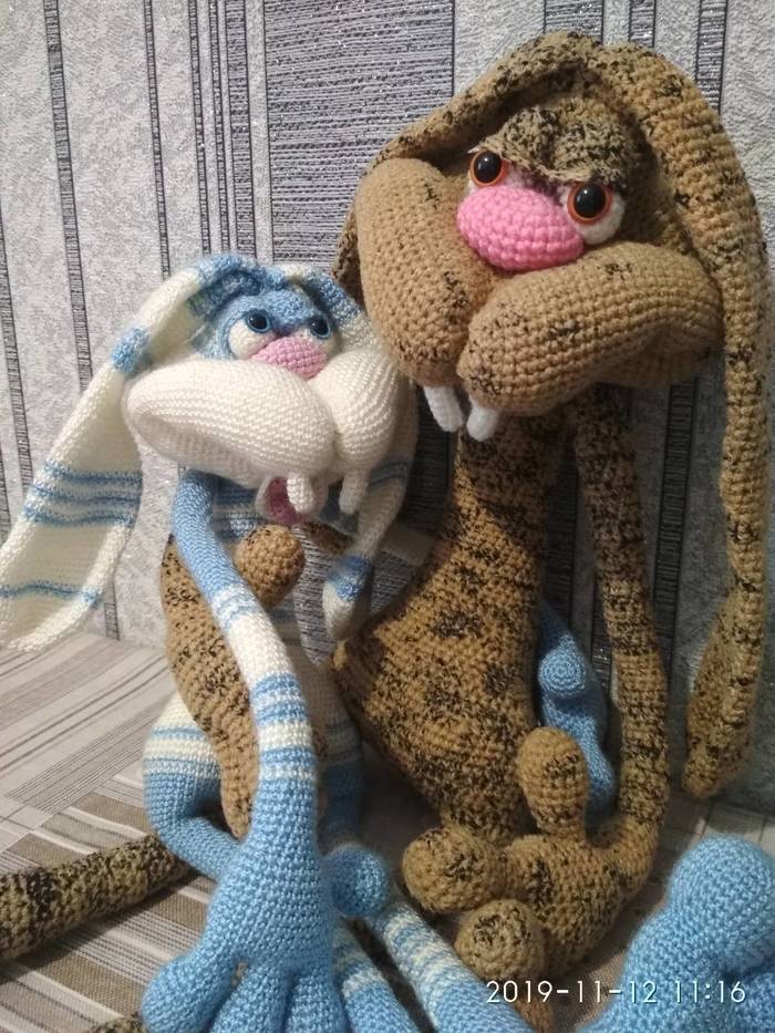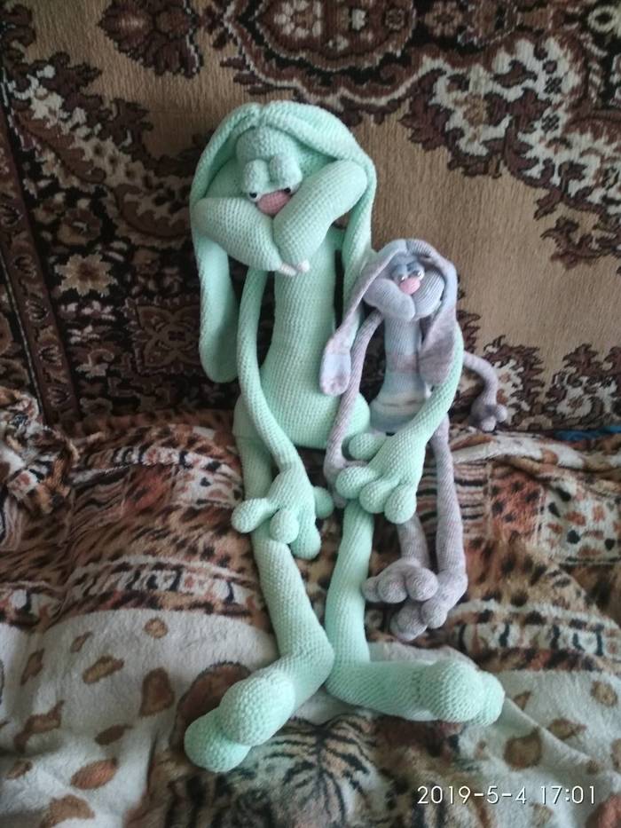 Год назад попался мне на глаза Заяц Кекс по МК С. Перцевой. И я ими заболела))) За это время связала 13 зайцев от 40 см до 120 см плюс уши ( 1/3 зайца ). Все получаются разные и такие балдежные))).