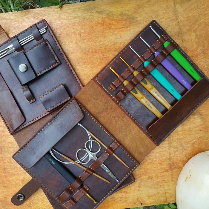 Решил поделиться недавним изделием моих родителей. Было изготовлено в подарок на юбилей маминой подруги, такой же большой любительницы вязания. Не самый лучший вариант в плане компактного хранения - есть тканевые пеналы и множество менее габаритных органайзеров, но удобство и вложенная в подарок душа нивелируют этот недостаток