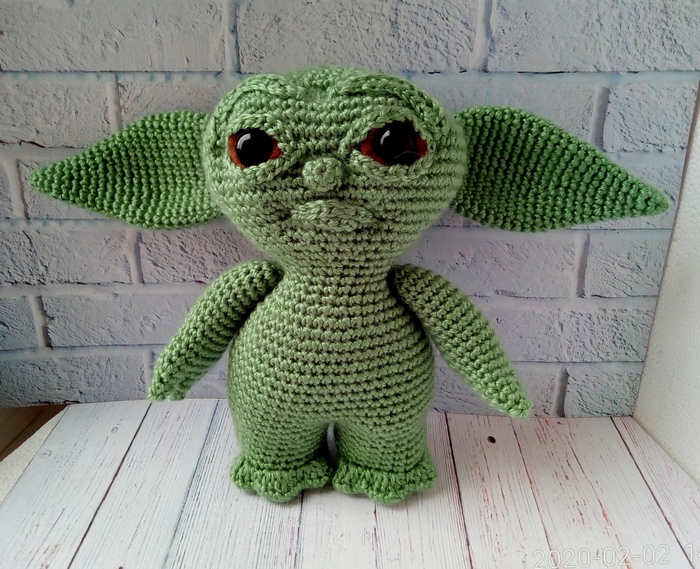 Держите бэби Йоду из сериала "Мандалорец". Связан по мастер-классу из интернета из акриловых ниточек.