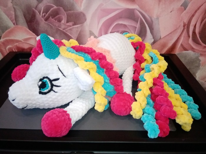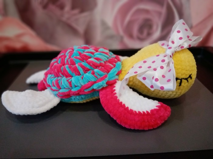 Вязать его было той ещё пыткой. Схему не нашла, поэтому вязала методом тыка. Зазорчики между лапами по бокам абсолютно не нужны, это мне потом было отдельным испытанием. Пузико пришивать сложно в этом месте оказалось.