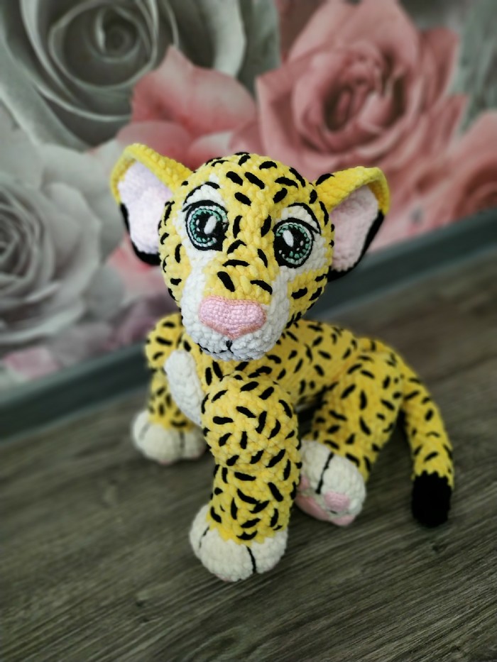 Лапы вязать пришлось обратным ходом, ну обычно справа налево вяжешь, а тут приходилось переворачивать через один ряд и вязать наоборот, но чтобы столбик правильный был. То ещё веселье.