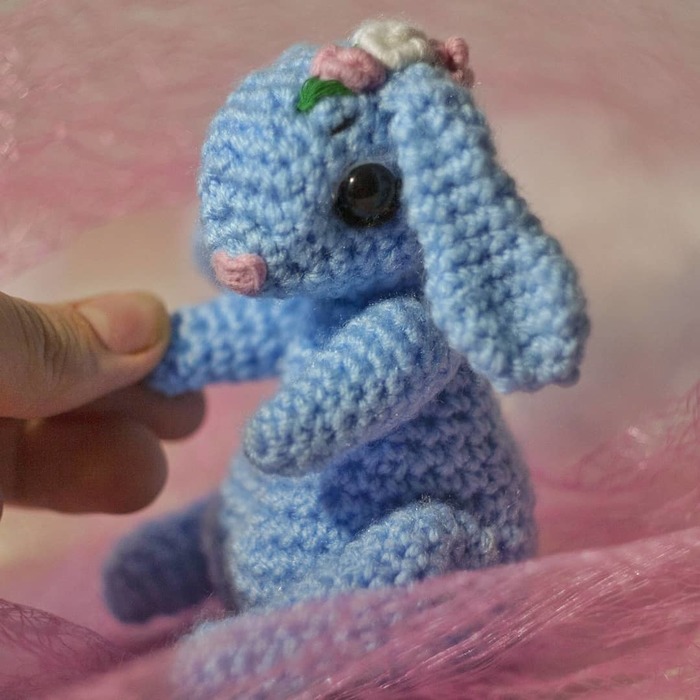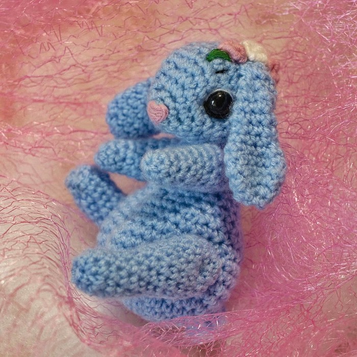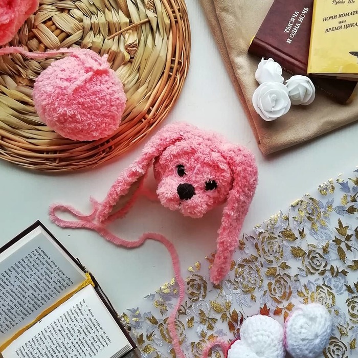 Вязала зайку на одном дыхании, начала с мордашки, чтобы сразу узнать характер. Девочка не вредная перевязывать детали не пришлось. Вязала без схемы по своим представлениям.