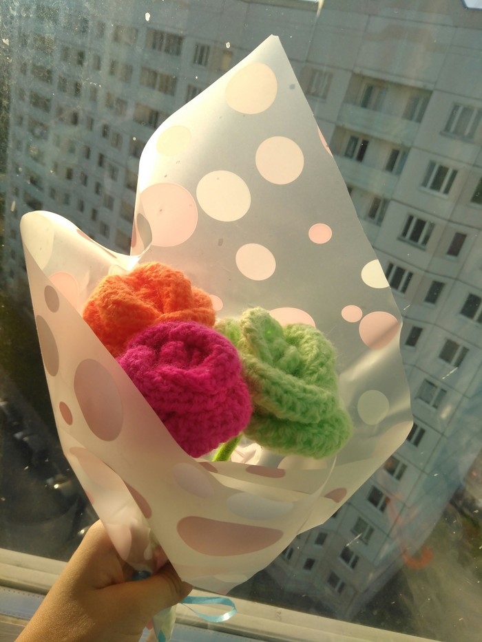 Изначально вязала из обычных ниток простые игрушки, по схеме или видео, дабы научиться.
