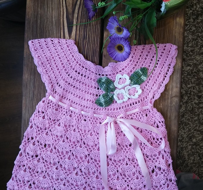 В чем плюс этого платья- узор можно подвязывать и подвязывать вниз.. И платье будет расти вместе с ребёнком..