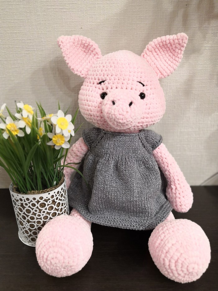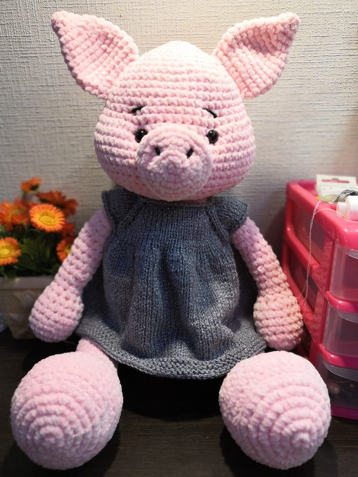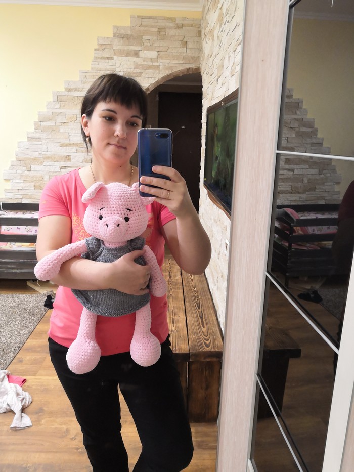 Очень люблю тяжелую музыку. Всякие там Rammstein, System of a Down, Korn и тому подобные. Обычно после нескольких треков я льну к мужу, но в этот раз захотелось нежности и мягкости, а потому побежала не в крепкие мужские объятия, а за крючком и плюшевой пряжей. Получилась вот такая Няша, довольно большая, толстая, воздушная, мягусенькая гиппопотамиха. Возможно, бегемотиха (но это не точно) :)