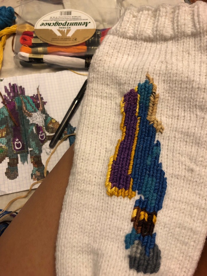 Важно, чтобы толщина нити вышивки был соразмерена, толщине нити основного изделия!