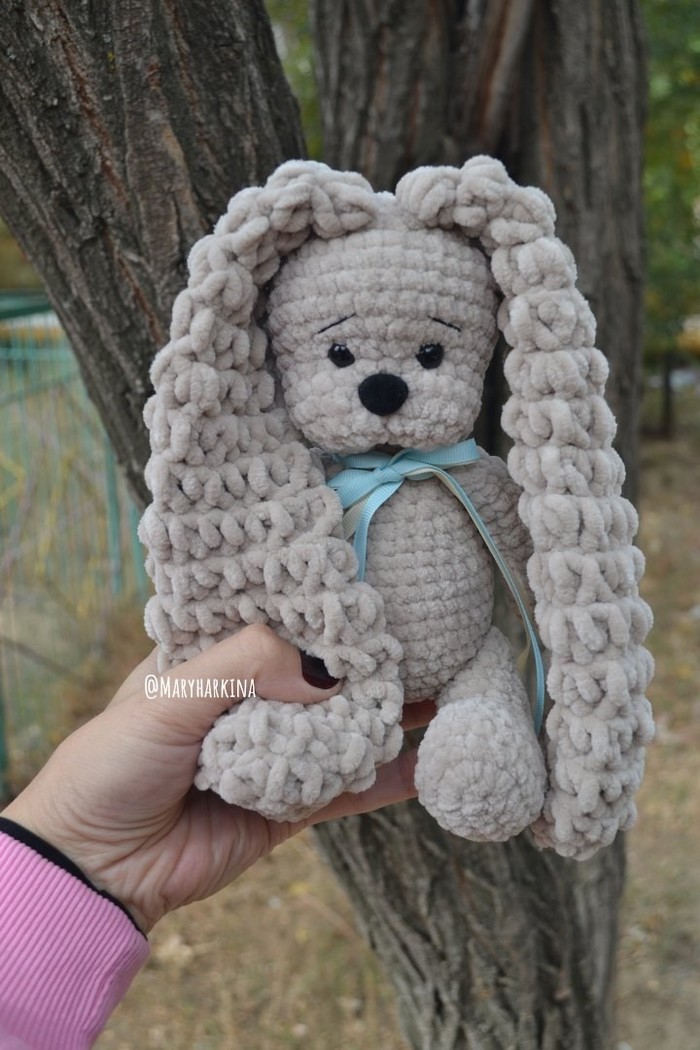 Вяжется эта шапка только из плюшевой пряжи, потому что если связать её обычной нитью, она будет нереально маленького размера