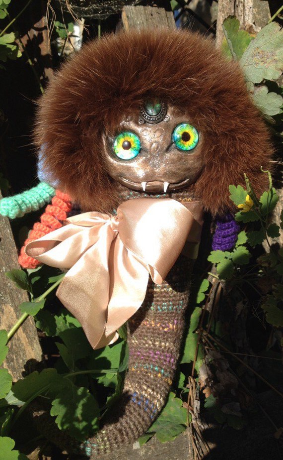 Горгона ! Вязаная змейка на каркасе. Атласный бант  шикарная меховая повязка. Волосы- пружинки змеи. Глаза стекло. Мордочка и зубы глина. Воблу камень