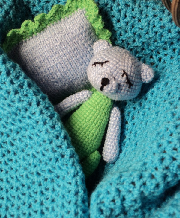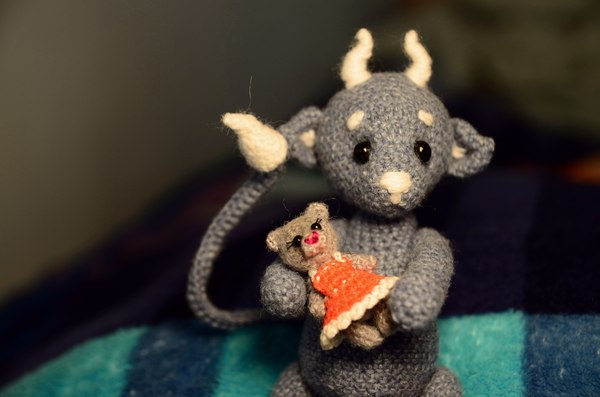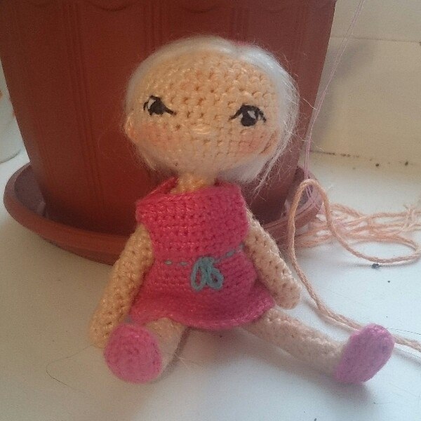 Связан из Альпины Андре Классик и Картопу Нубук. Рост около 7 см. Глазки приклеены, поэтому не подходит для малышей.