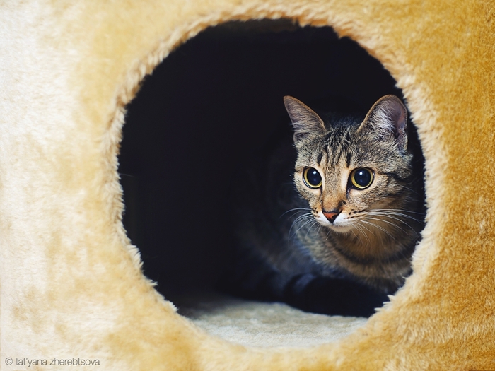 Как и все наши кошки, она подобрана на улице. Котя выскочила ночью под колеса нашей машины. Очаровательный котенок с огромными глазами. Судьба у нее, как и у всех кошек фотографов-любителей: пожизненная модель. На ней тестируются все объективы, все световые схемы и т.п. За все это время она, наверное, была снята во всех ипостасях, и во всех жанрах. Вот только некоторые из них: